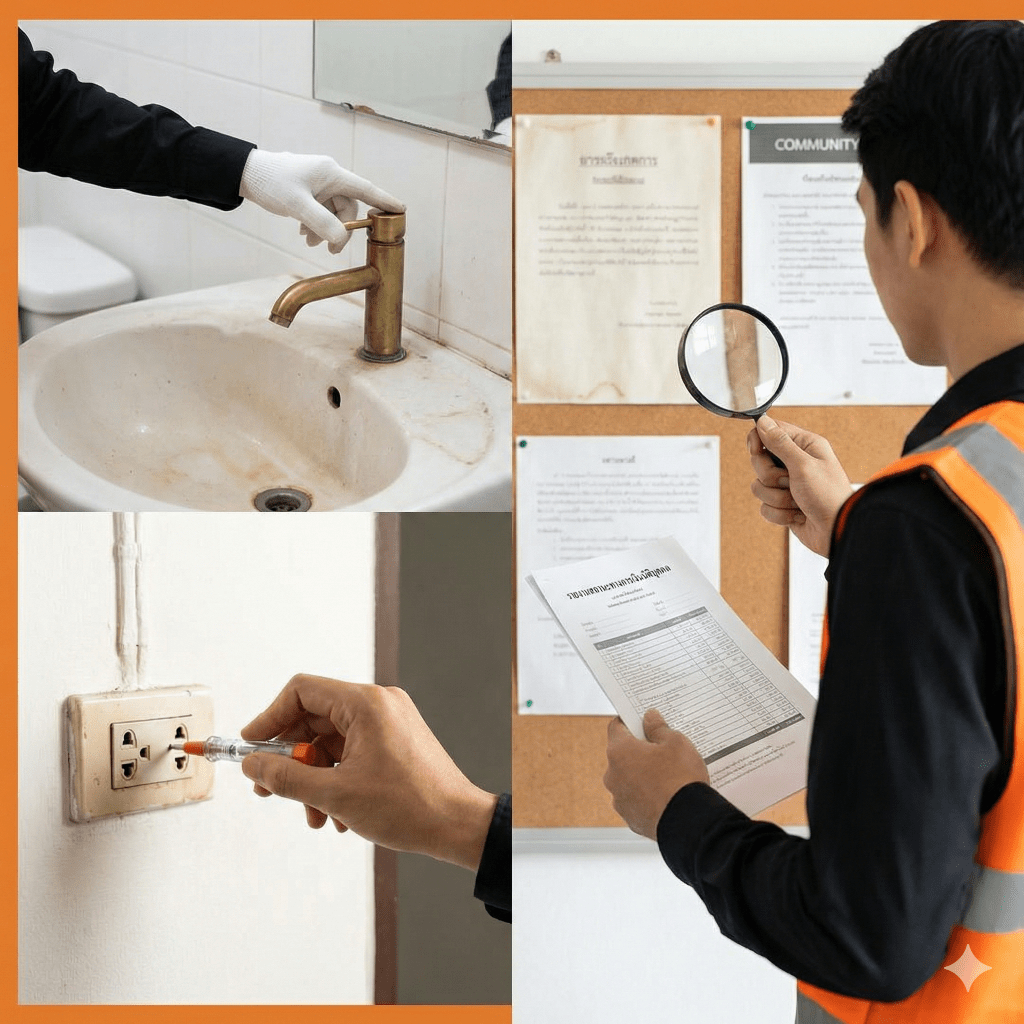 ท่อและระบบน้ำ/ไฟฟ้า: จุดอ่อนสำคัญของคอนโดเก่าคือระบบท่อและไฟฟ้าที่อาจเสื่อมสภาพตามกาลเวลา ควรตรวจสอบรอยรั่วซึมตามผนัง เพดาน หรือในห้องน้ำ หากมีปัญหาใหญ่ ค่าใช้จ่ายในการซ่อมแซมอาจสูงมาก